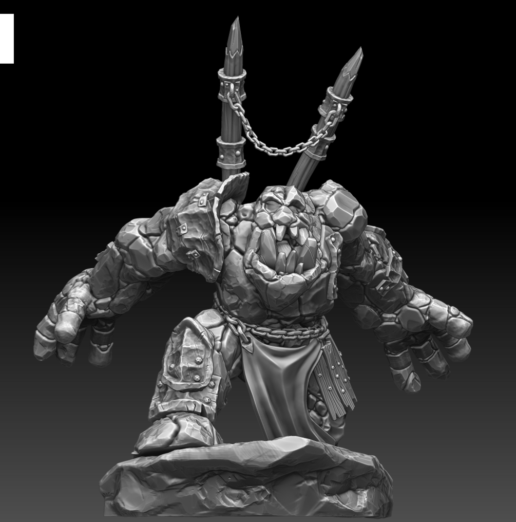 Da Big Idol is a large rock golem bellowing its mighty war cry, throwing its arms back as it prepares to charge into the enemy army. Standing 110mm to the top of its head, it makes a great addition to an orc army or as a terrifying enemy for a band of adventurers.